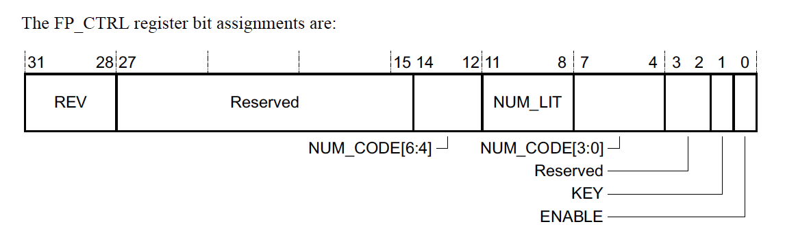 Interesting, it looks like the breakpoint for dummy_function_1 (address 0x240) has been removed from FP_COMP_0 and dummy_function_2 through dummy_function_7 have been configured as hardware breakpoints.