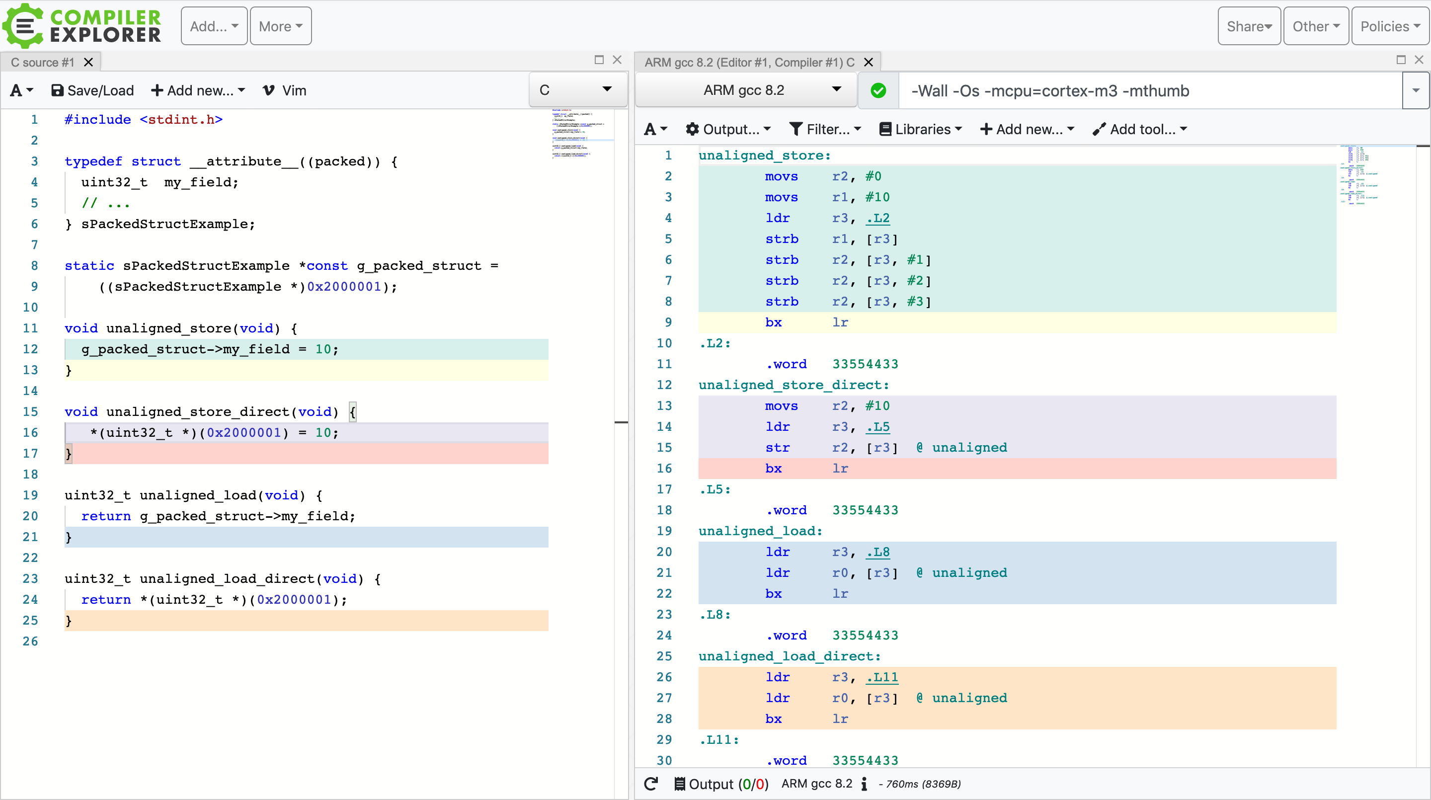 access. When compiling code for space optimizations (using -Os CFLAG), I would have expected unaligned